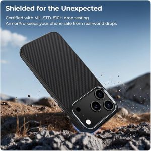 Crafted from 100% genuine DuPont Kevlar fiber, a lightweight yet incredibly durable material commonly used in aerospace and military applications, the ArmorPro iPhone 17 Pro aramid fiber case offers unmatched strength and long-lasting protection for your device.