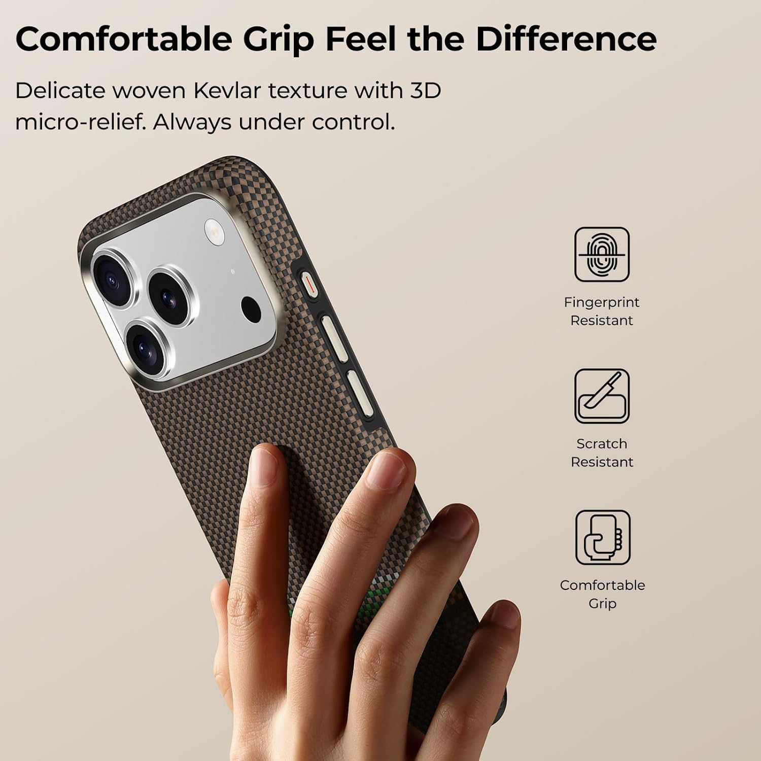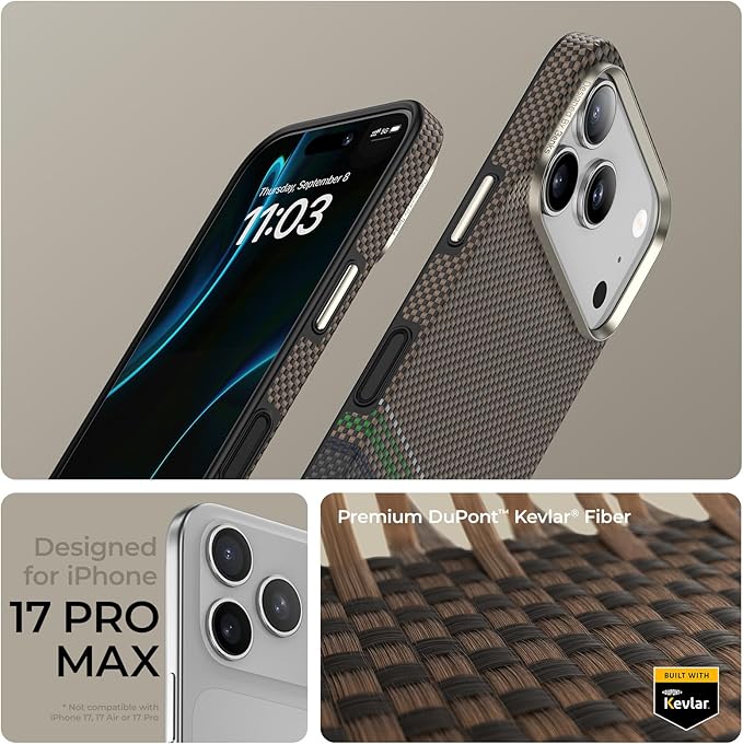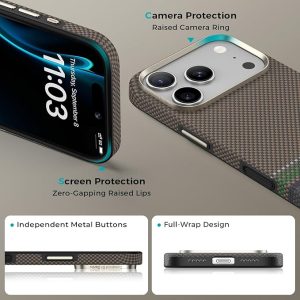 Dupont Kevlar Fiber Crafted from 100% genuine DuPont Kevlar fiber, a lightweight yet incredibly durable material commonly used in aerospace and military applications, the Prestige ArmorPro for iPhone 17 Pro and 17 Pro Max case delivers unmatched strength and long-lasting protection for your device