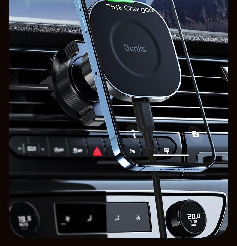 Magnetic Mounting Benks CZ02 MagClap Traveller Pro utilises powerful magnets for secure mounting on car vents or dashboards.